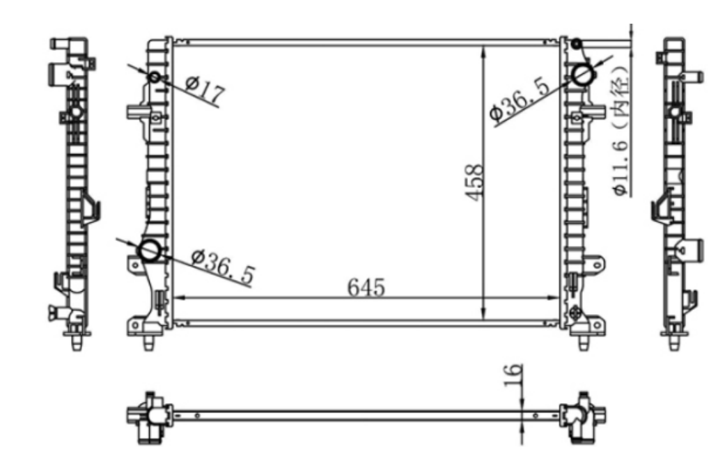 Heyuan Code EA142 Car brand China Car type 缤越1.5T SX11国五 Tank size 484*34/34 Core size 448*650*16 OEM 2069017200
